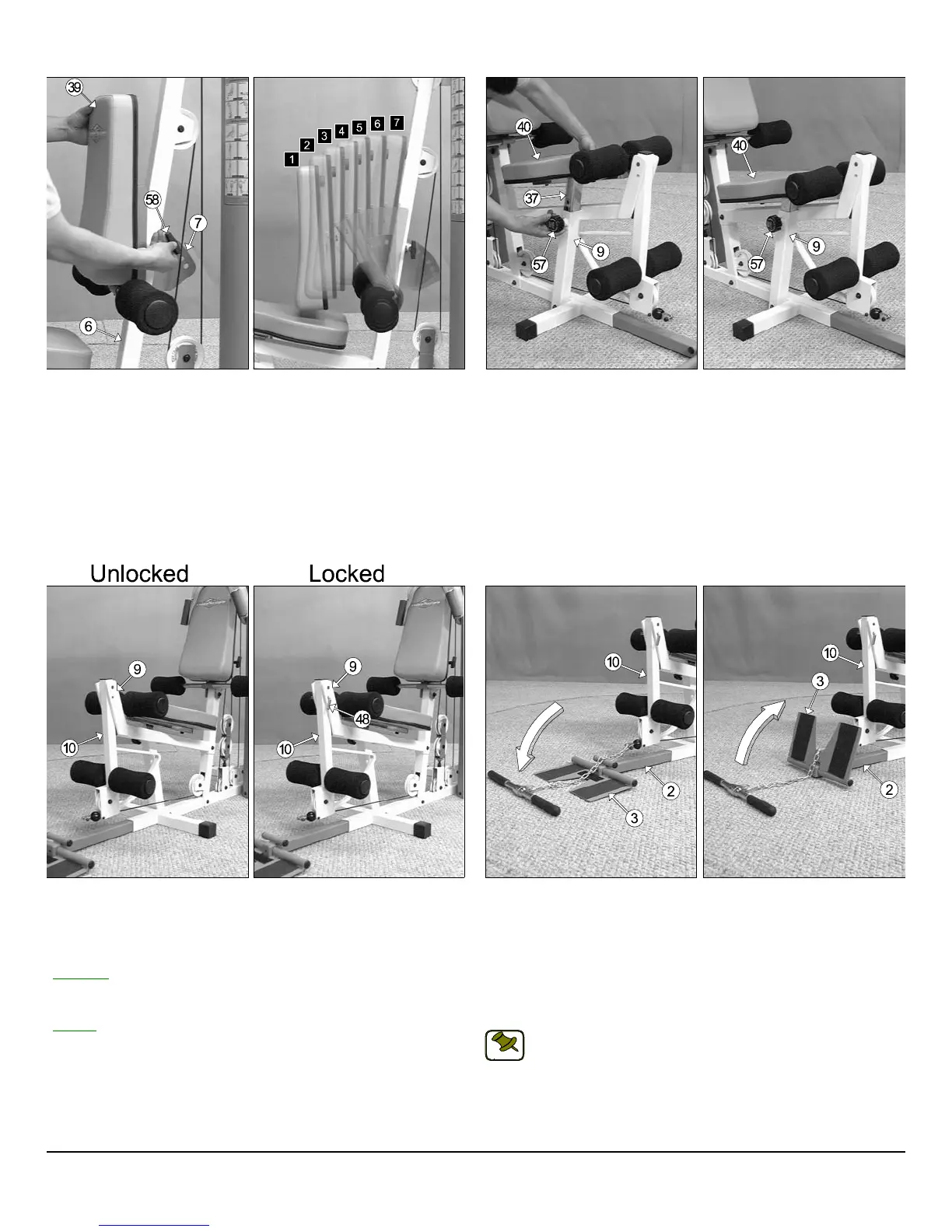 . Insert the L-Locking Pin (#48) through the Leg Extension Bench