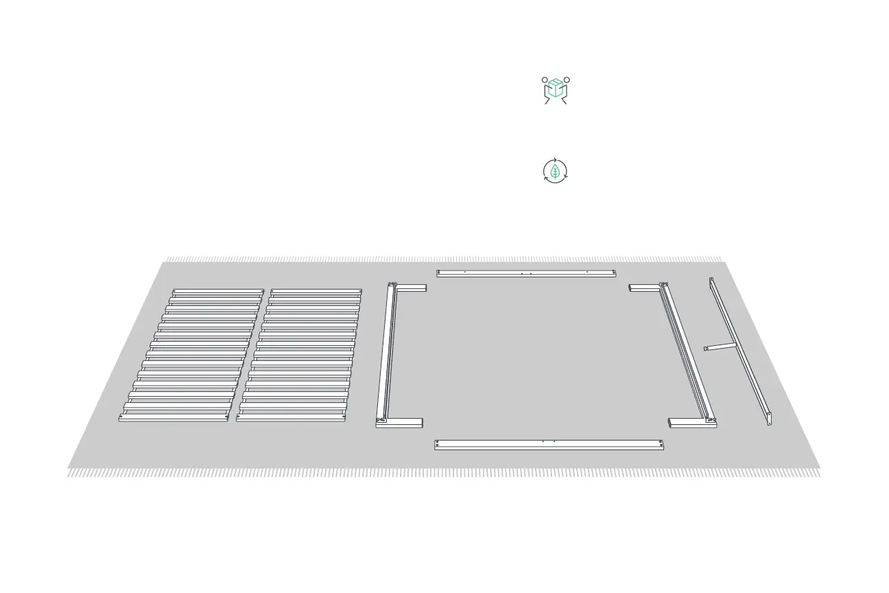 Arrange all frame pieces on the floor. We recommend
