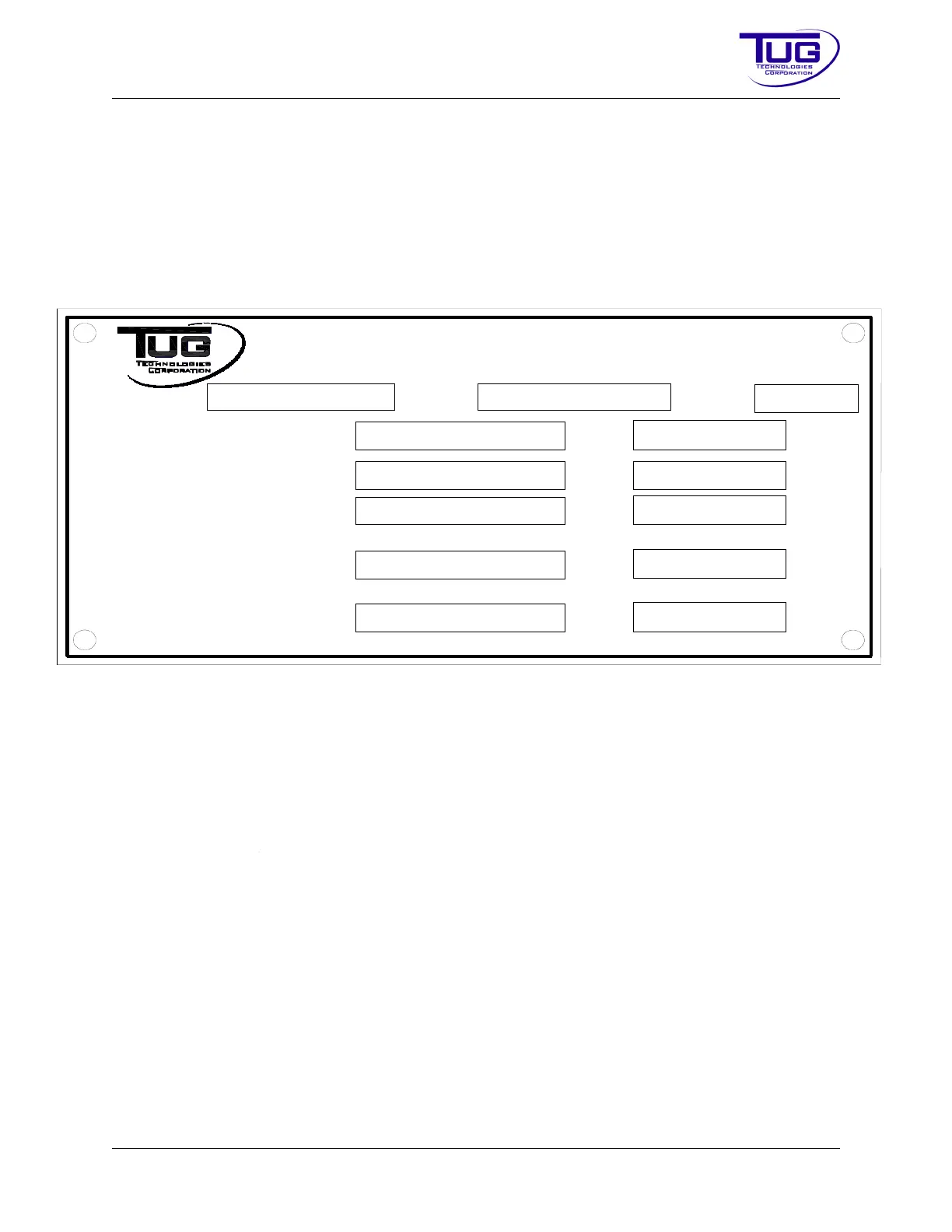 manufacture. The mailing address of TUG is also located at the top of the data plate opposite