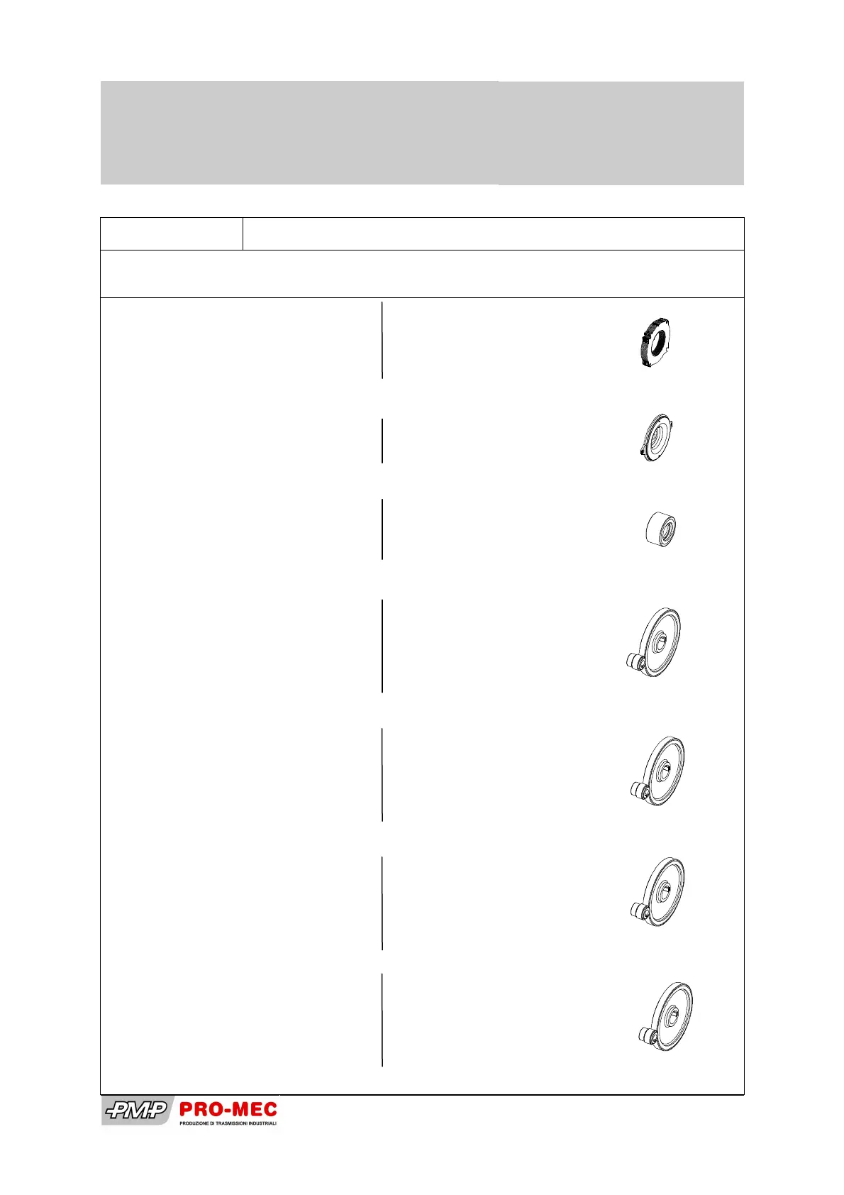 Spare parts list: available kits
