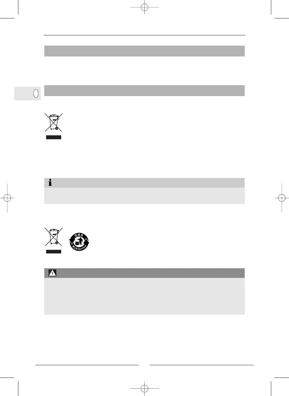 The installed lead-gel battery must be disposed of separately from the rest of the device.