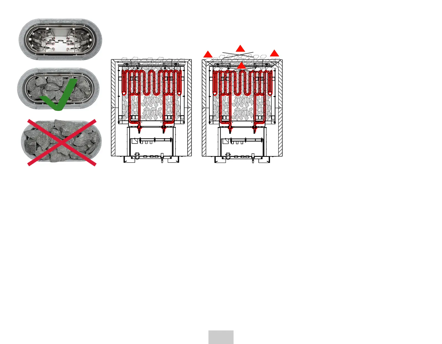 elmotstånden. Gör inte en stack av stenarna på bastuaggre-