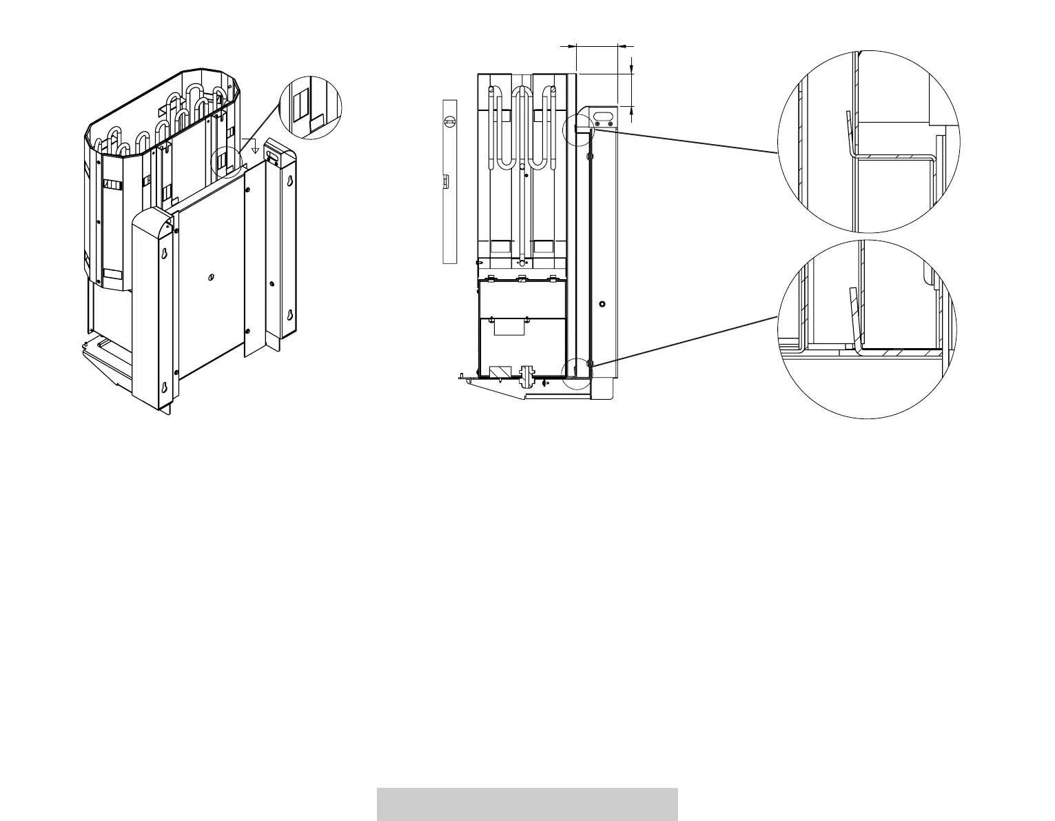 bastuaggregatets metallstomme i väggställningen på fyra fästen (Det. I).