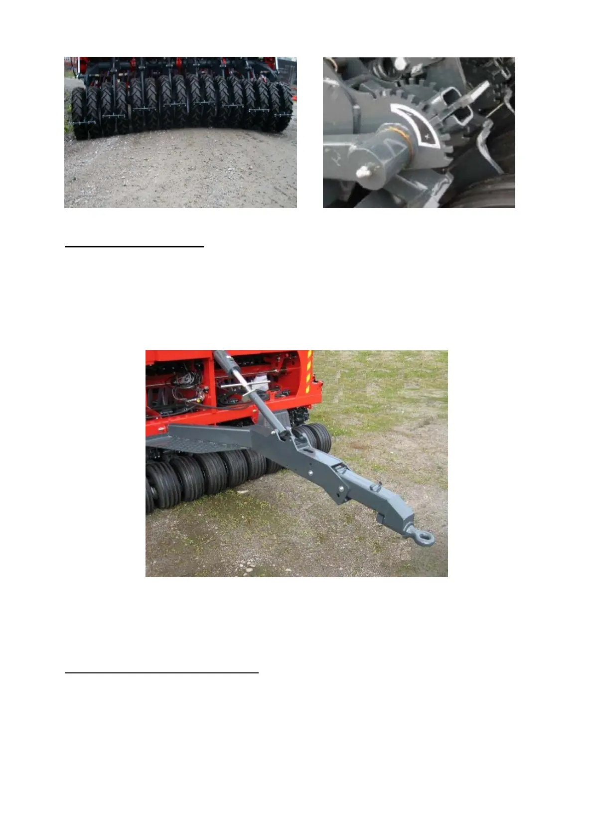 the tractor towing hook, wheel packer or rear harrow. Ensure that the push bar cylinder is at its shortest
