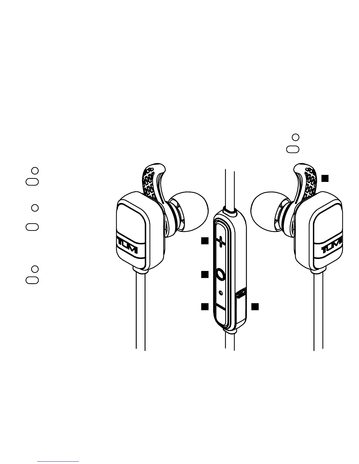 Tumi TUWEB - Tumi Earbuds Controls and Components; + Button; O Button; - Button