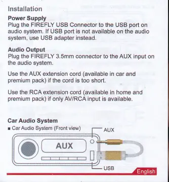 Plug the FIREFLY 3.5mm connector to the AUX input on