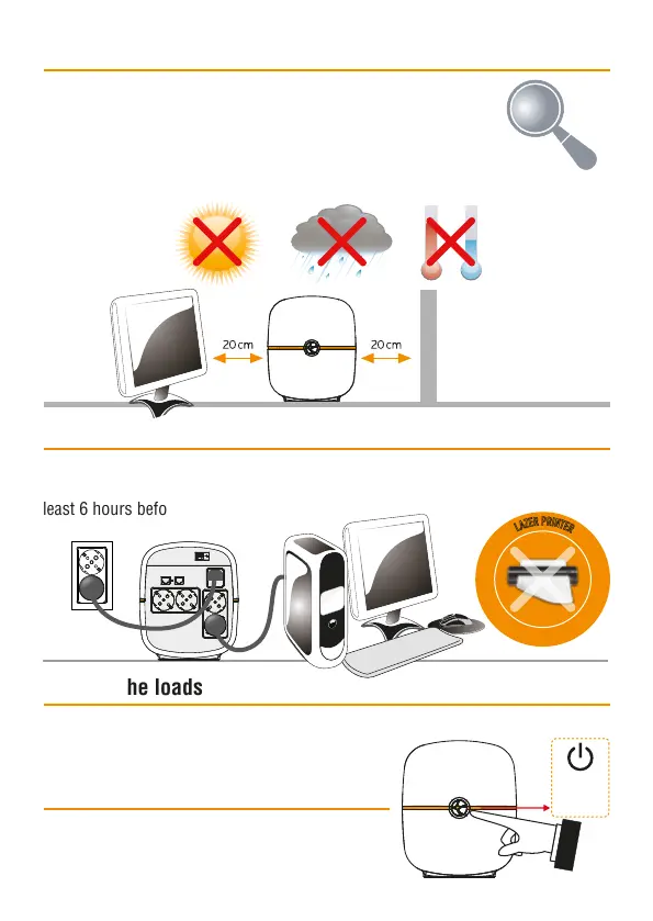 Plug in the loads to output receptacles on the rear panel of the UPS. Simply turn