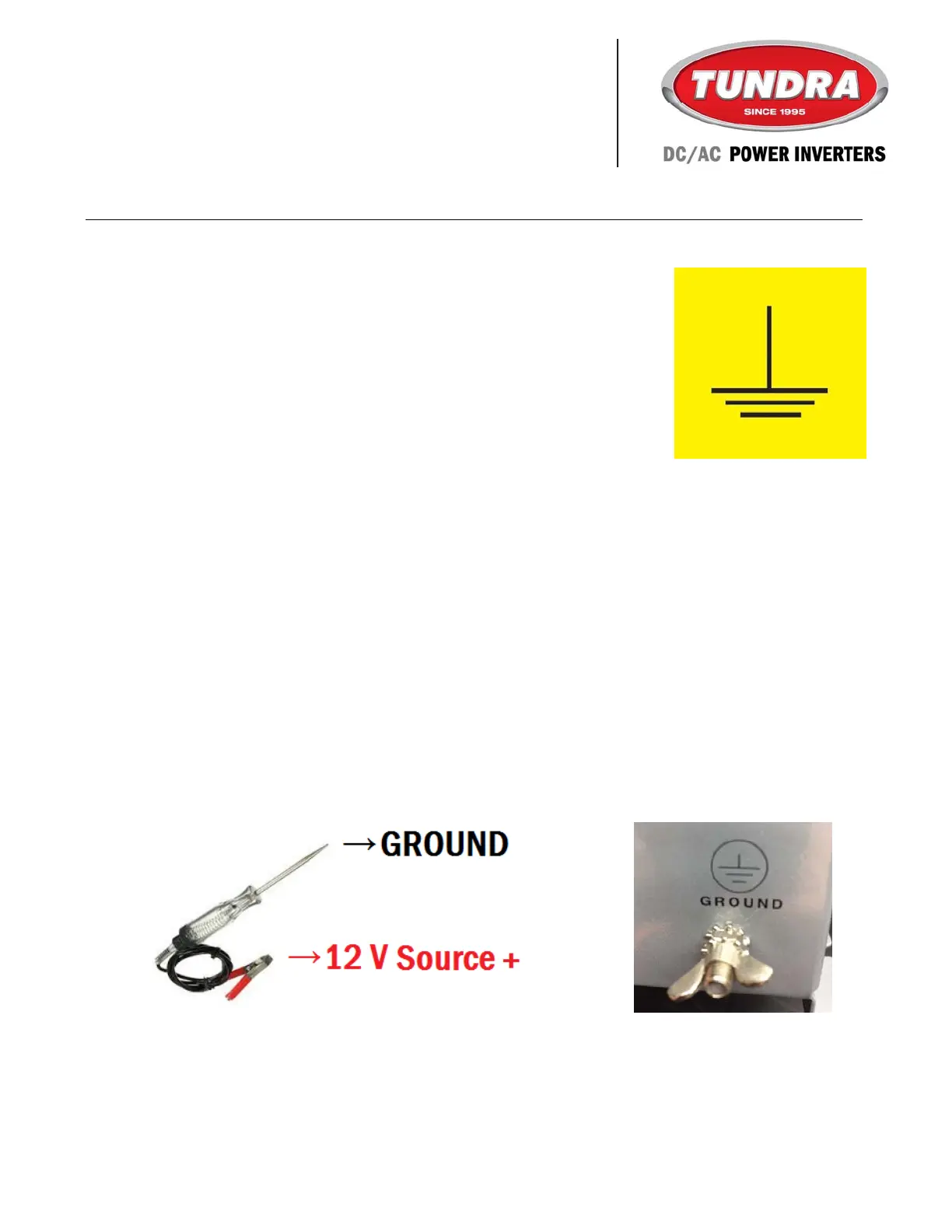 1. Using a test lamp, connect a 12 V power source to the grounding bolt on the back panel of the power