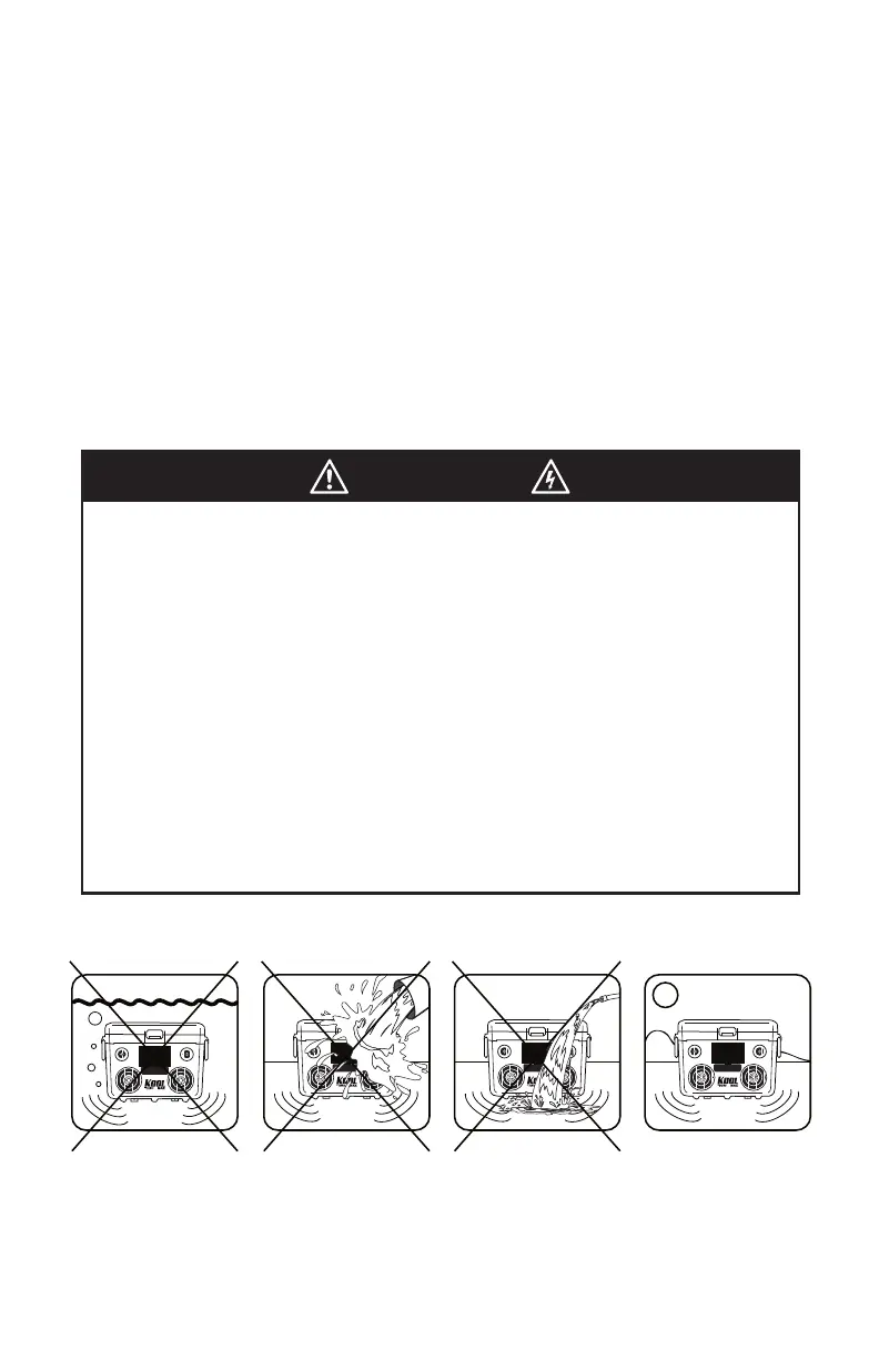 DANGER: The water resistant storage areas are not waterproof. They are only designed