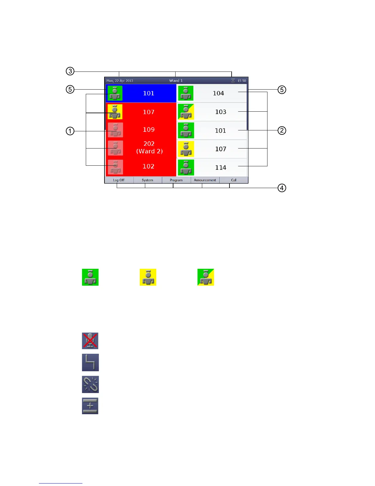 [1] Call list: Calls from connected rooms are shown. Fresh calls