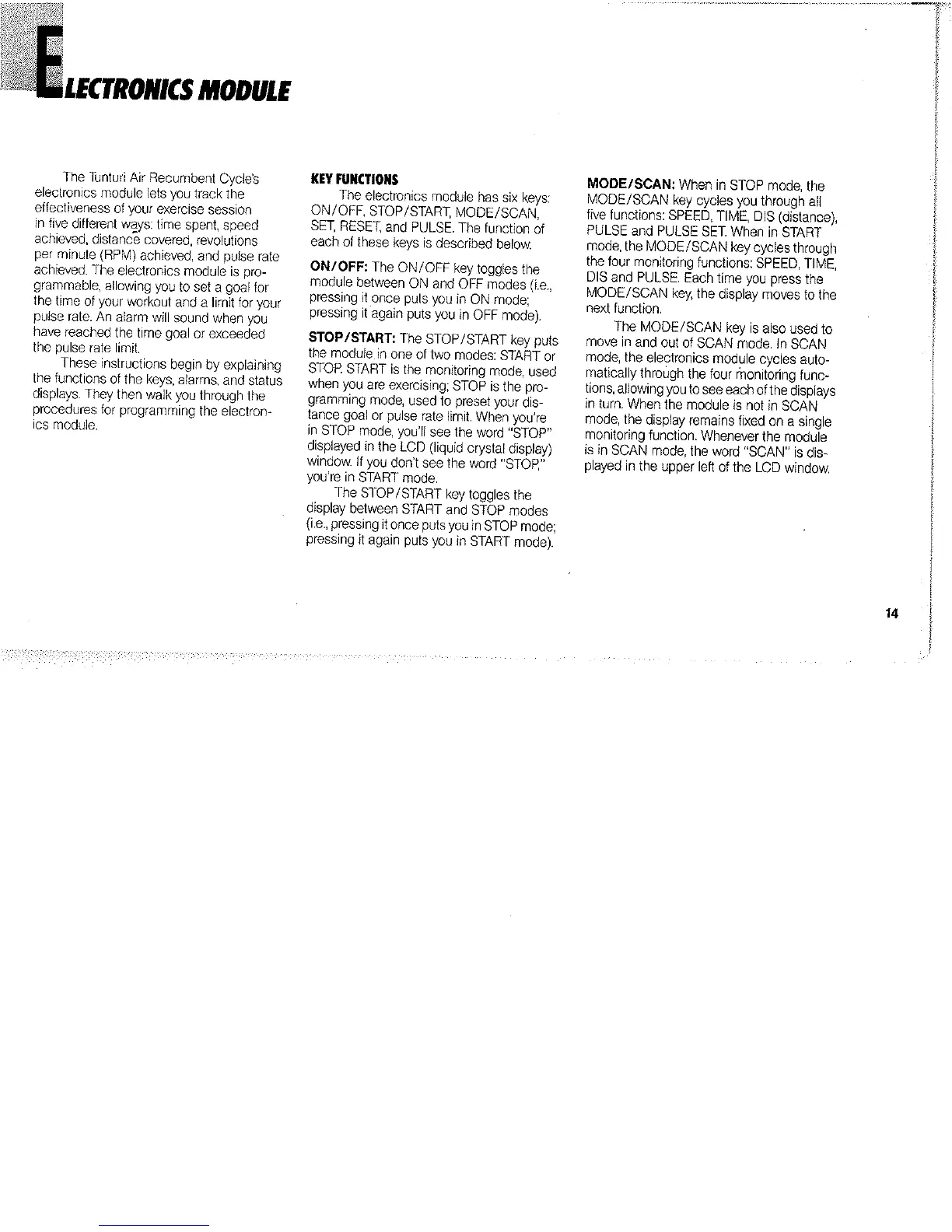 Tunturi AIRCYCLE E803 - Electronics Module; Key Functions