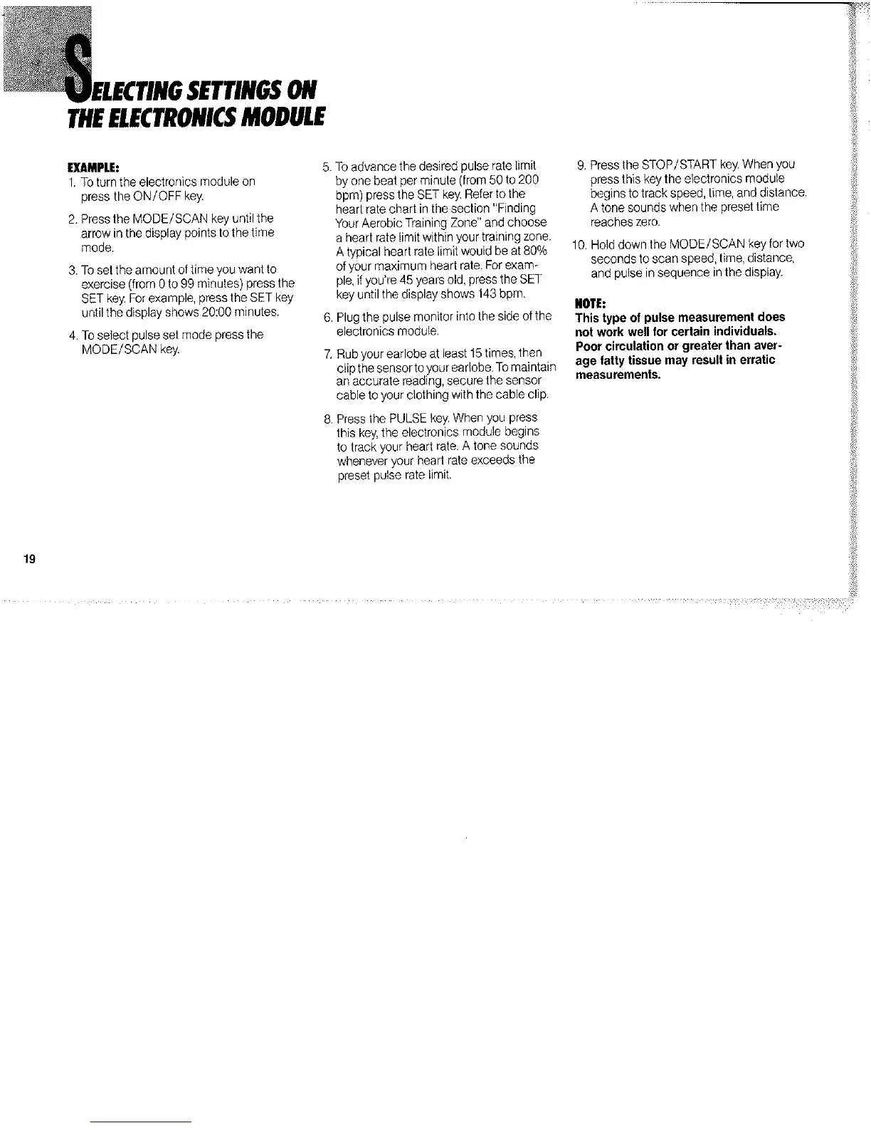 Tunturi AIRCYCLE E803 - Selecting Settings on the Electronics Module; Example Process