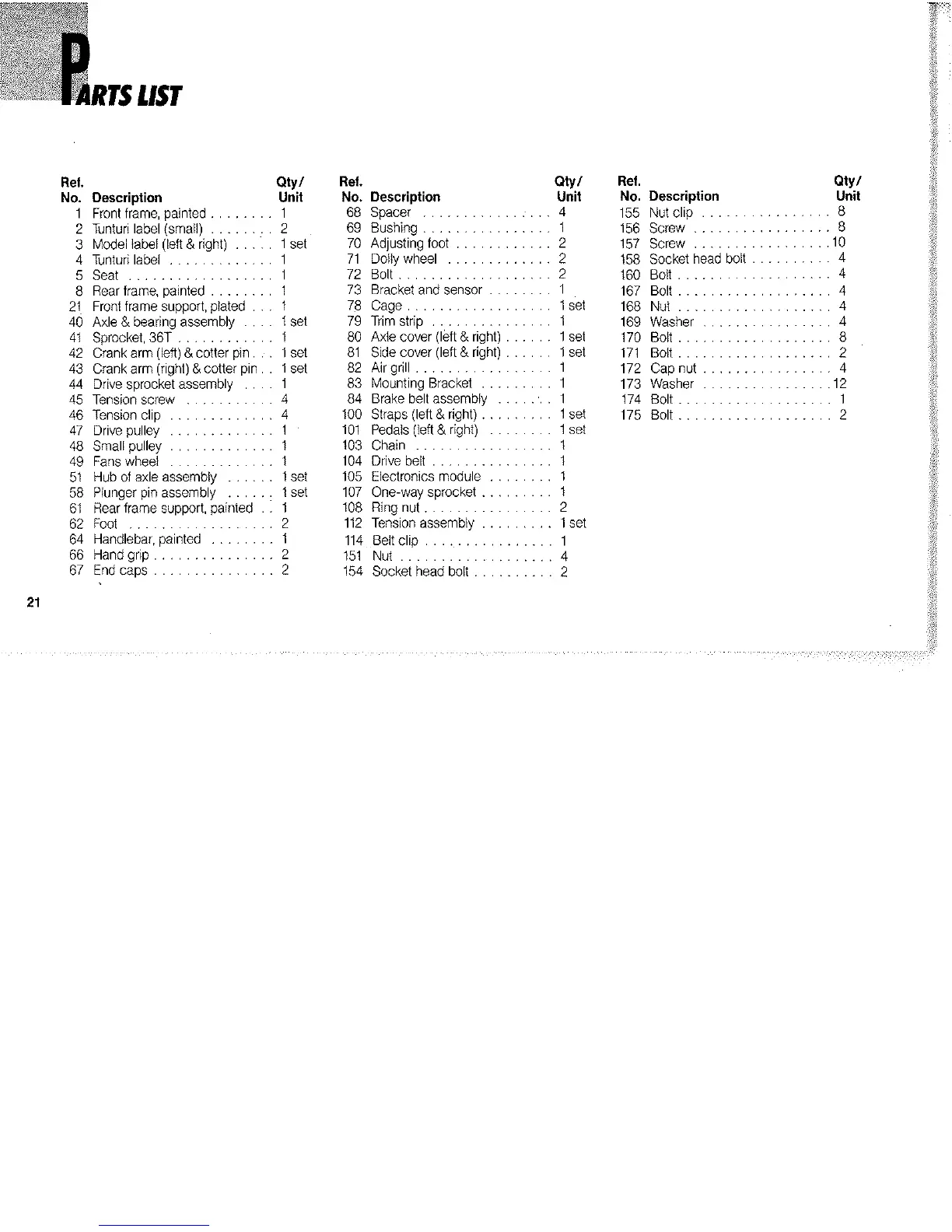 Tunturi AIRCYCLE E803 - Parts List