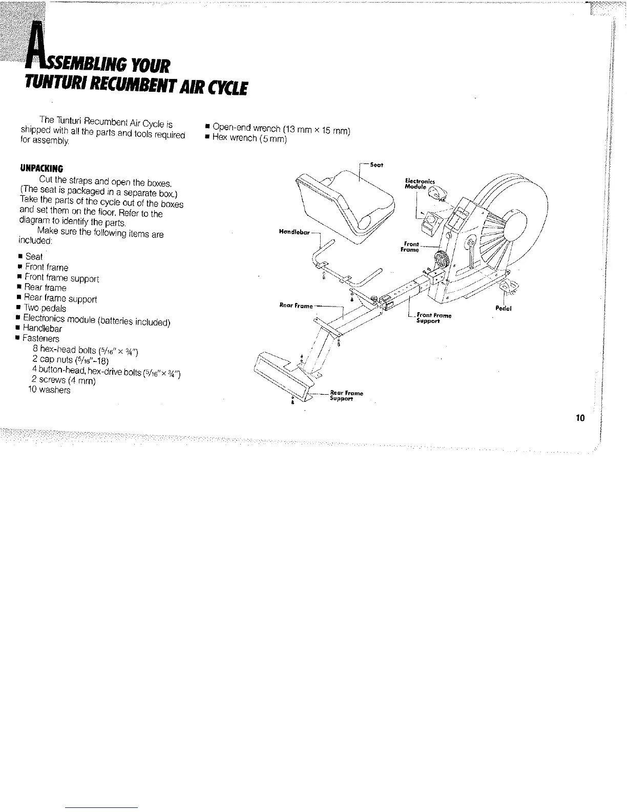 Tunturi AIRCYCLE E803 - Assembling Your Tunturi Recumbent Air Cycle; Unpacking