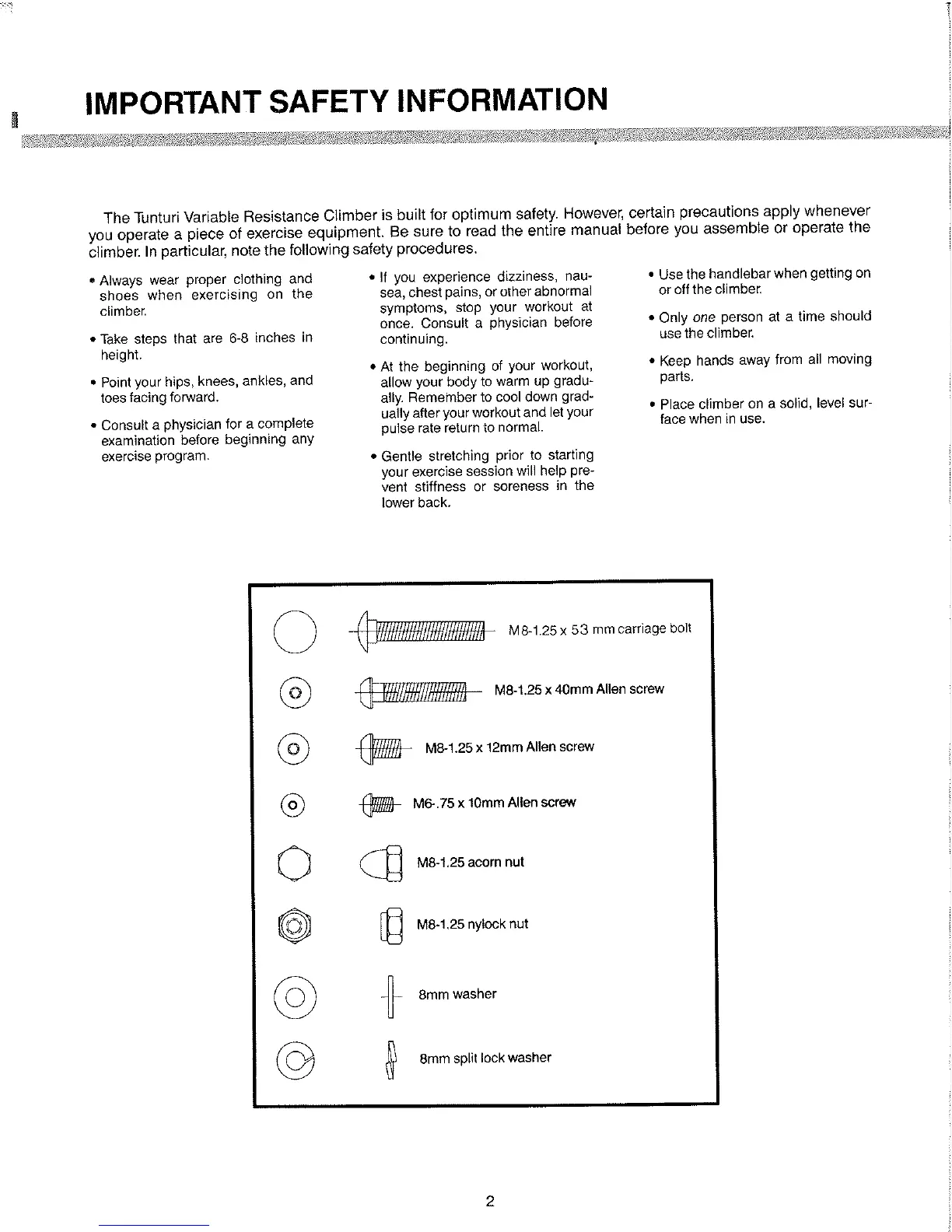 Tunturi C401 - Important Safety Information
