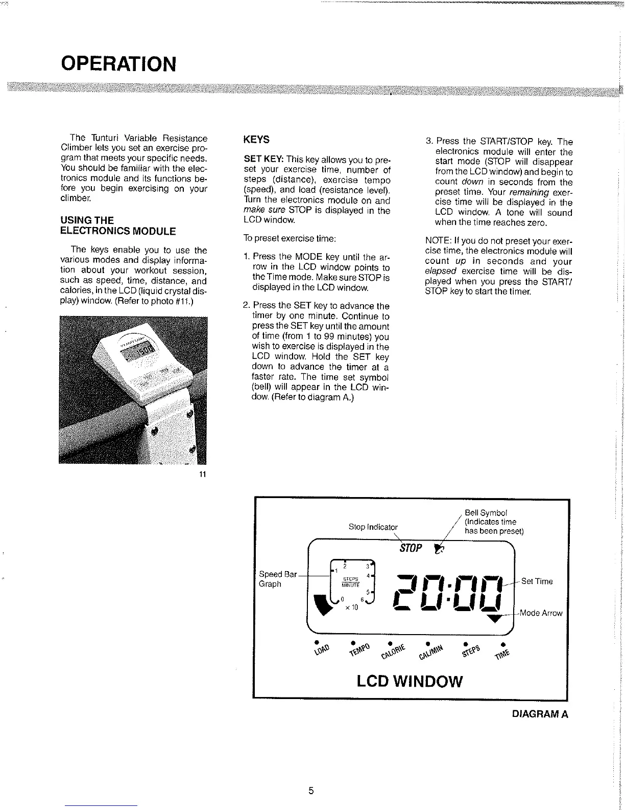 Tunturi C401 - Operation; Using the Electronics Module; Key Functions; Presetting Exercise Time