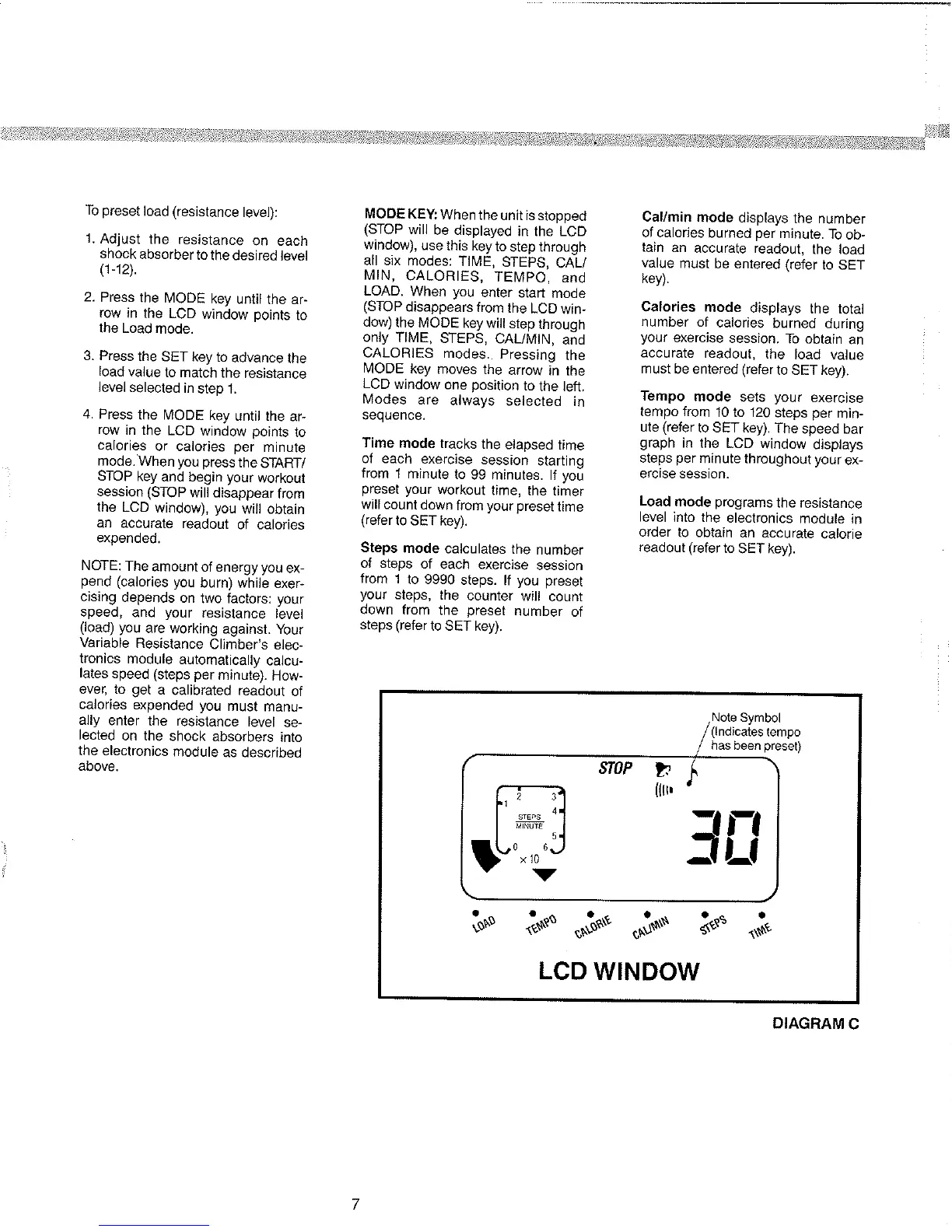 Tunturi C401 - Presetting Load Resistance Level; Mode Descriptions