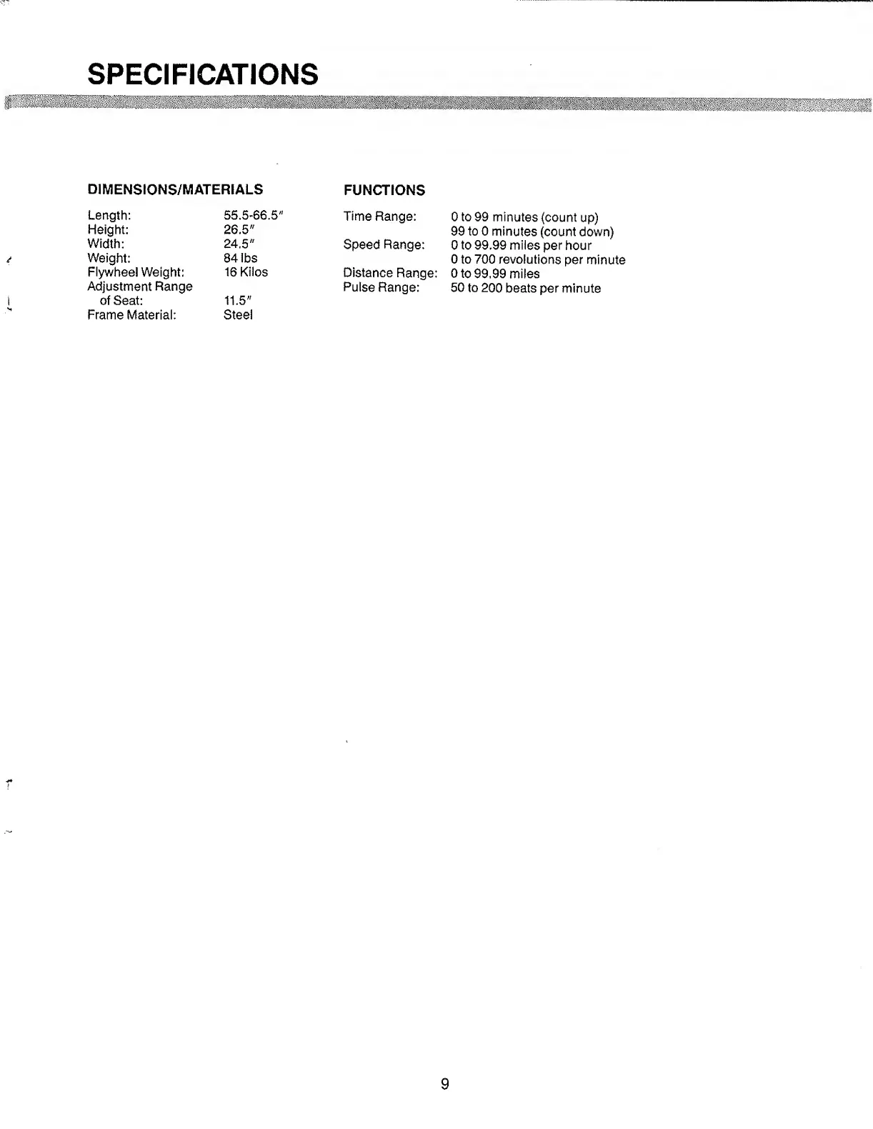 Tunturi E504 - Specifications