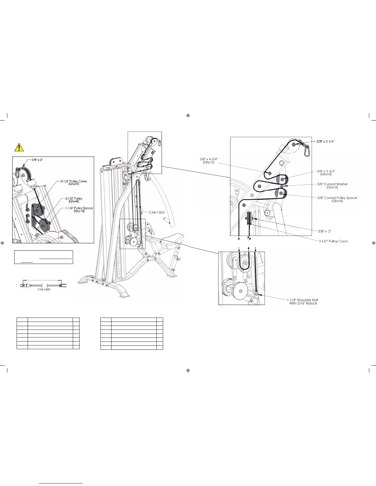 All Flat Washers and Nylocks are 3/8” unless otherwise noted.