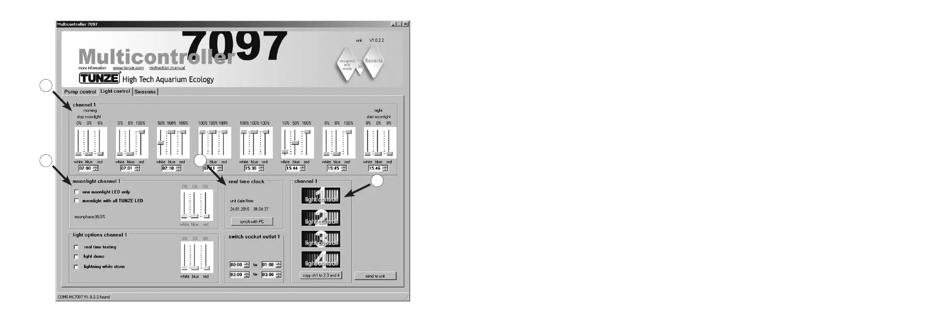 In diesem Feld werden die Leistungen und Lichtfarben sowie die Zeitbasis der TUNZE