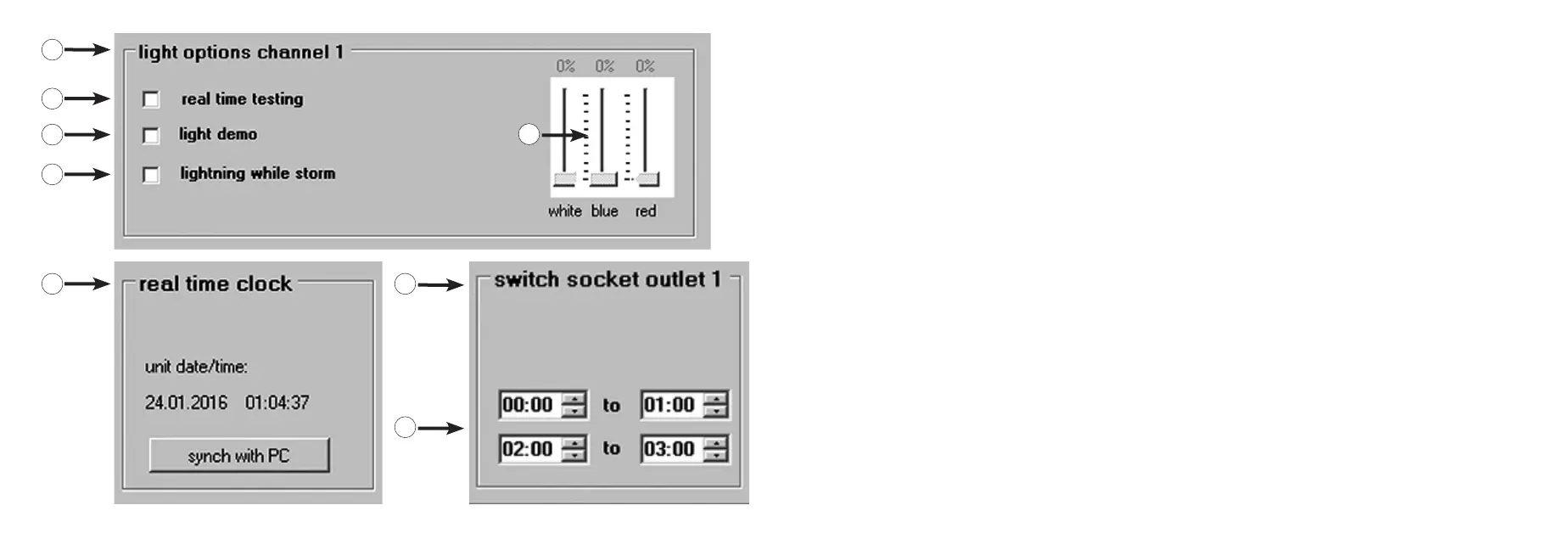 „switched socket outlet 1“ (ou 2, 3, 4) – Commande de luminaires d’aquariums avec prise