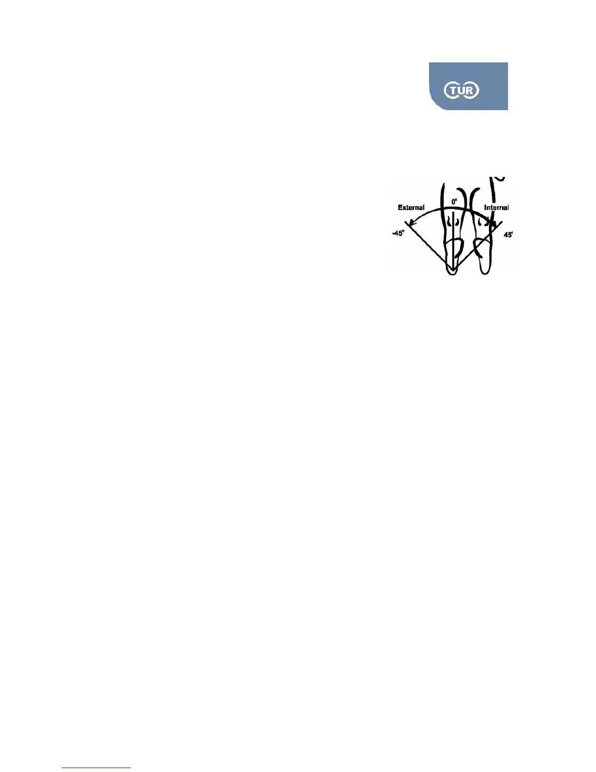 Range of Motion: Physiological ROM is 45 degrees in internal and