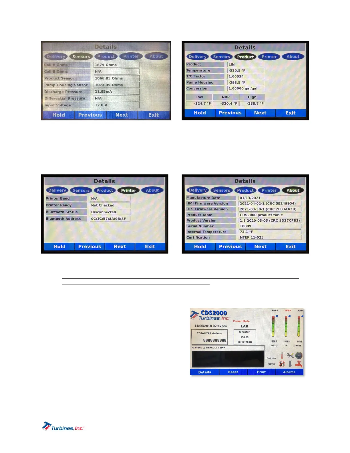 The following parameters are available for review within the Details Display: Turbine Rate, Pump Rate, K-