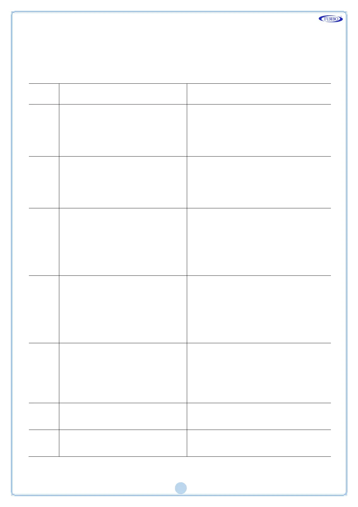 operation. The possible alarms and respective solutions are shown in the