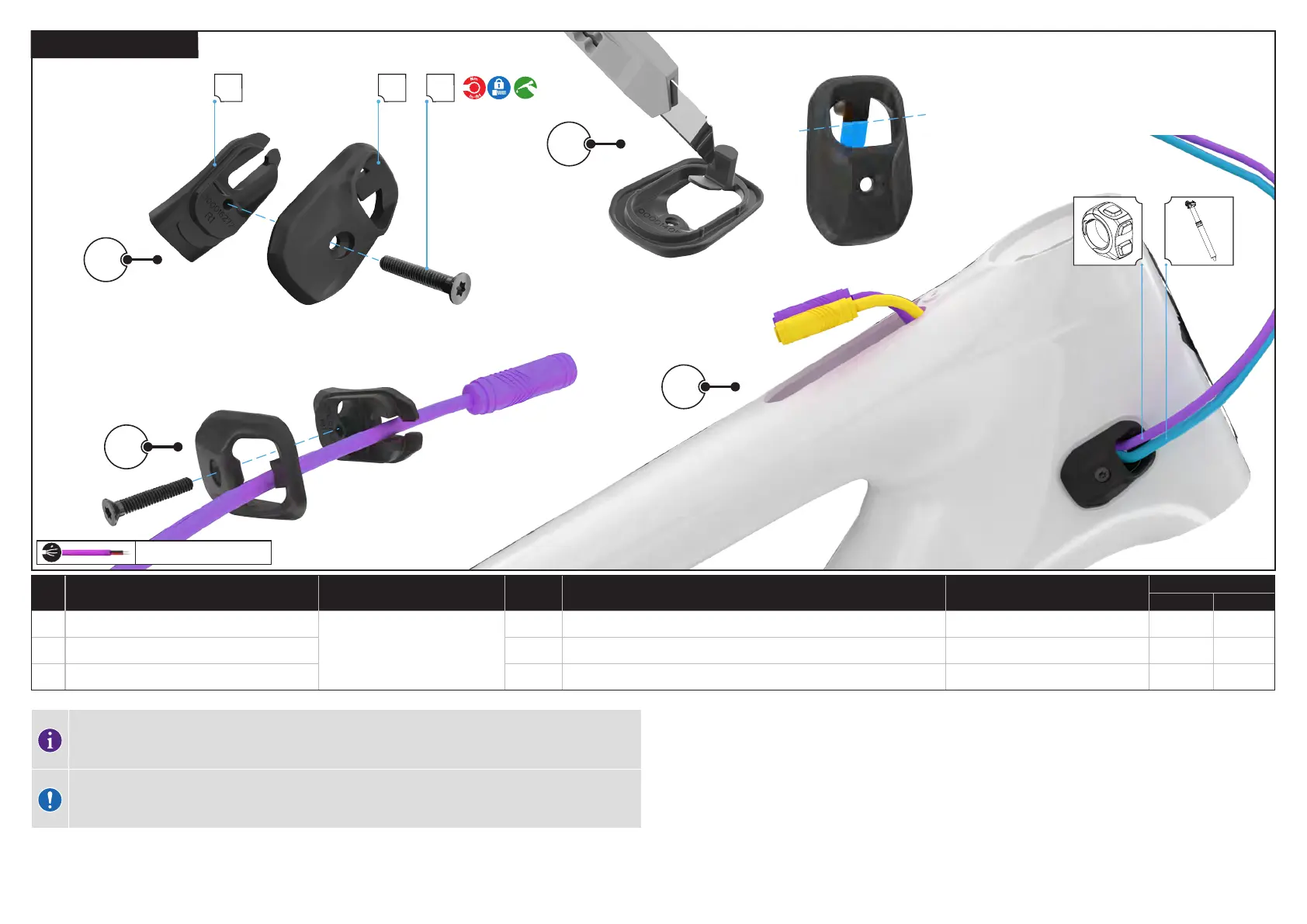 out of the TCU cutout in the top tube. Thread the derailleur cable through the lower hole on the non-drive side ICR
