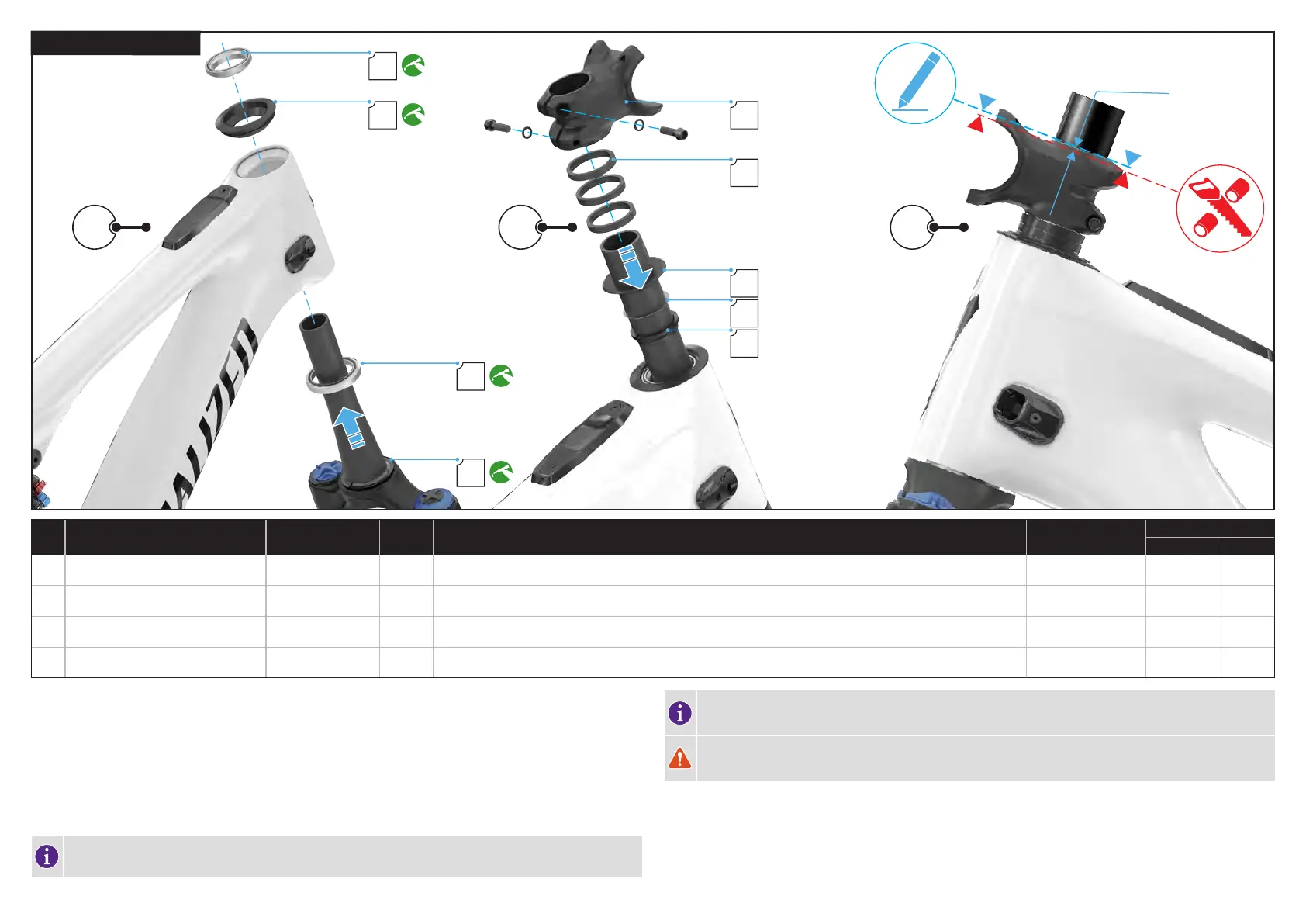WARNING! To ensure the fork is assembled securely, the position of the fork steerer cut needs to be below