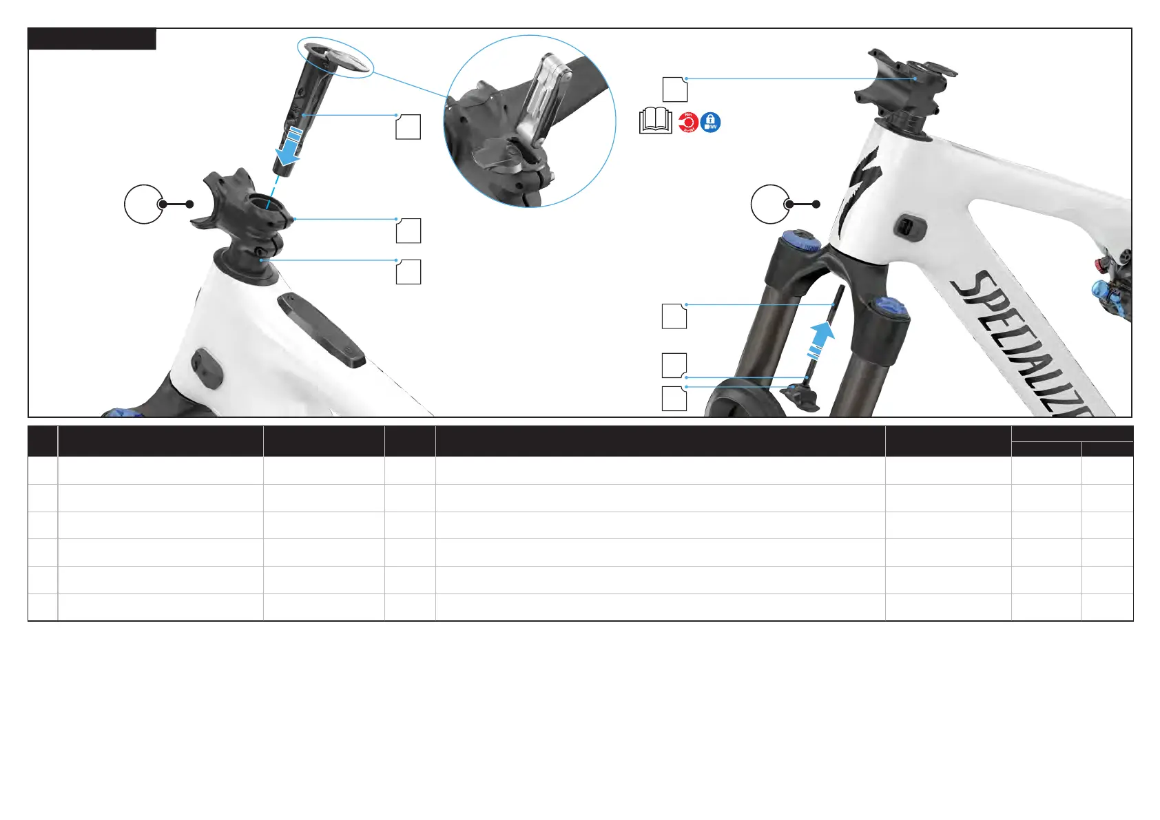 Install the stem spacers (A) and stem (M) onto the steerer tube without tightening the bolts.