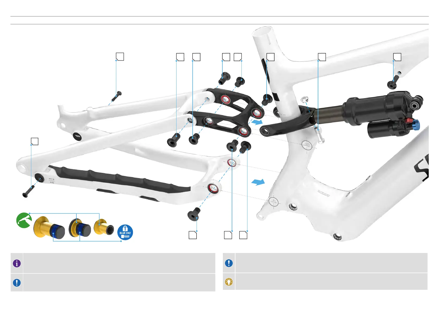 For best alignment results, do not torque any of the rear triangle pivot and shock bolts until the rear triangle is