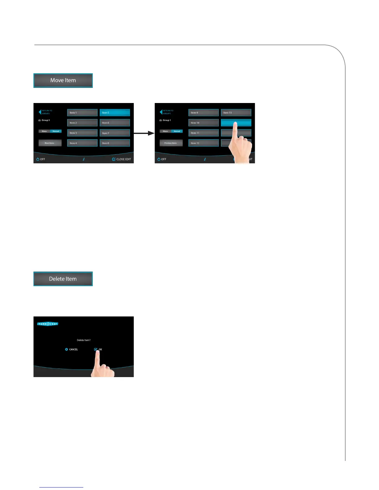 From the “Editing Options” screen (page 22), select “Delete Item.” Touch
