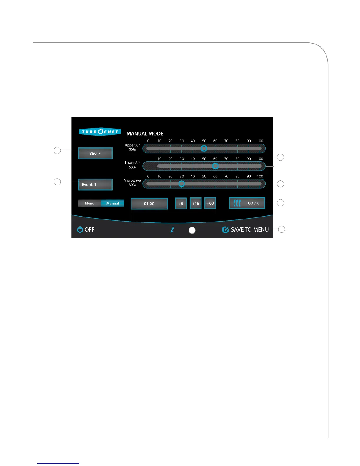 from preset cook settings. To access Manual Cook Mode, touch the Manual icon when the oven is off or