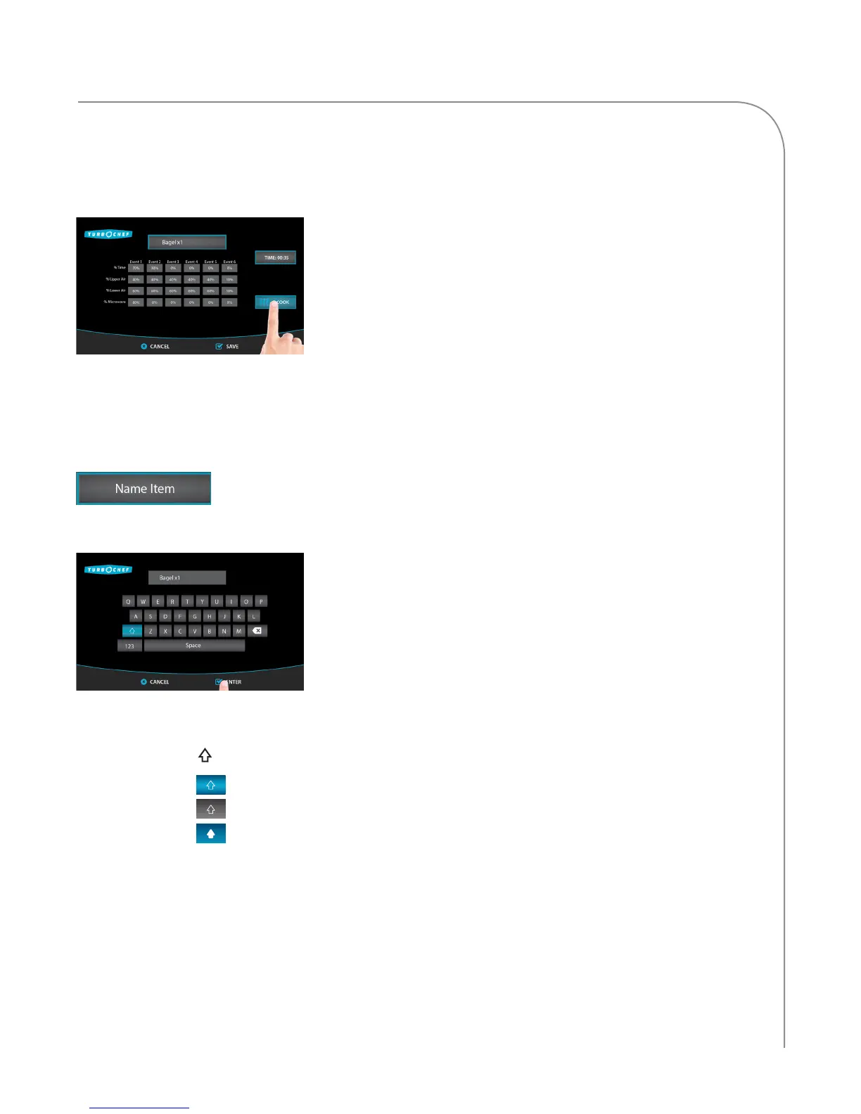 NOTE: Touch the Alt icon to show special characters (not included on all oven models – contact factory