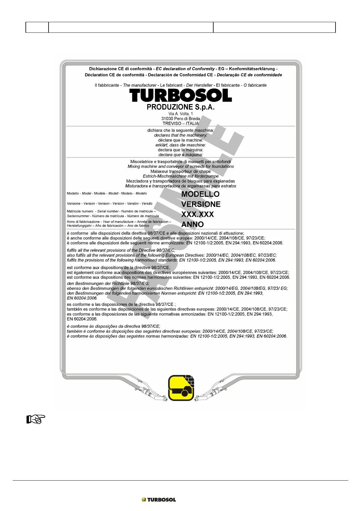Turbosol UNI 30 E - 1 Ce Declaration; Ce Declaration of Conformity
