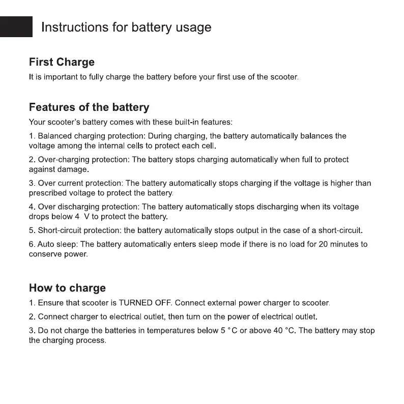 TurboWheel Lightning - Turbowheel Lightning Battery Care; Initial Battery Charging; Battery Protection Features; Proper Charging Procedure