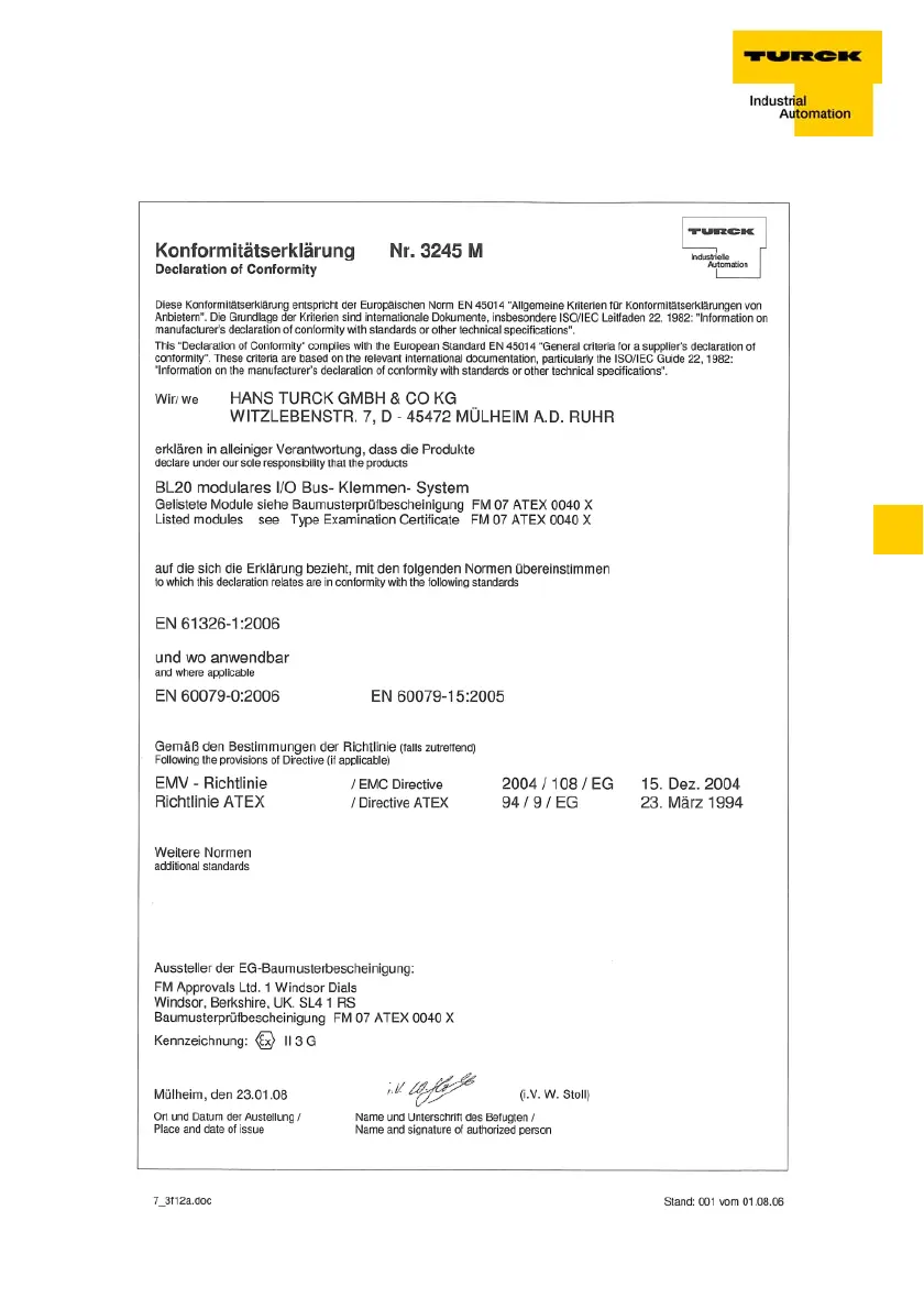 turck BL20 - Declaration of Conformity; Konformitätserklärung
