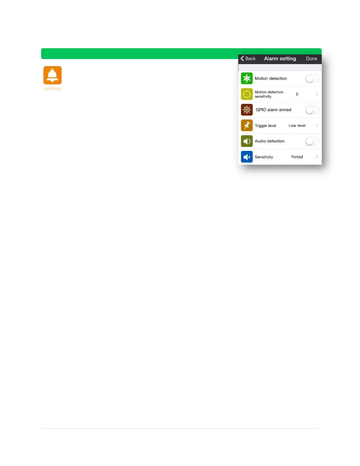 Audio Detection – On (detects audio)