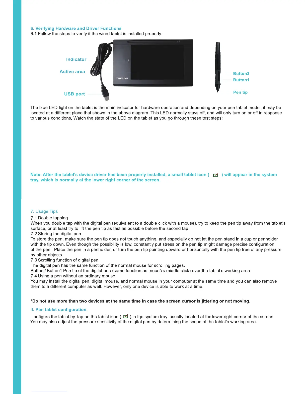 3. When the tablet detects the presence of the digital pen , the LED will be blinked slowly. This