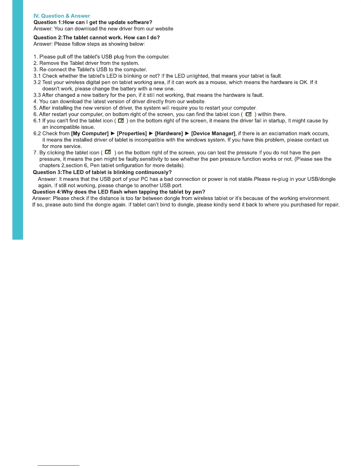 Turcom TS-6540 - Troubleshooting and Support; Software Update; Tablet Not Working Troubleshooting; LED Indicator Guide