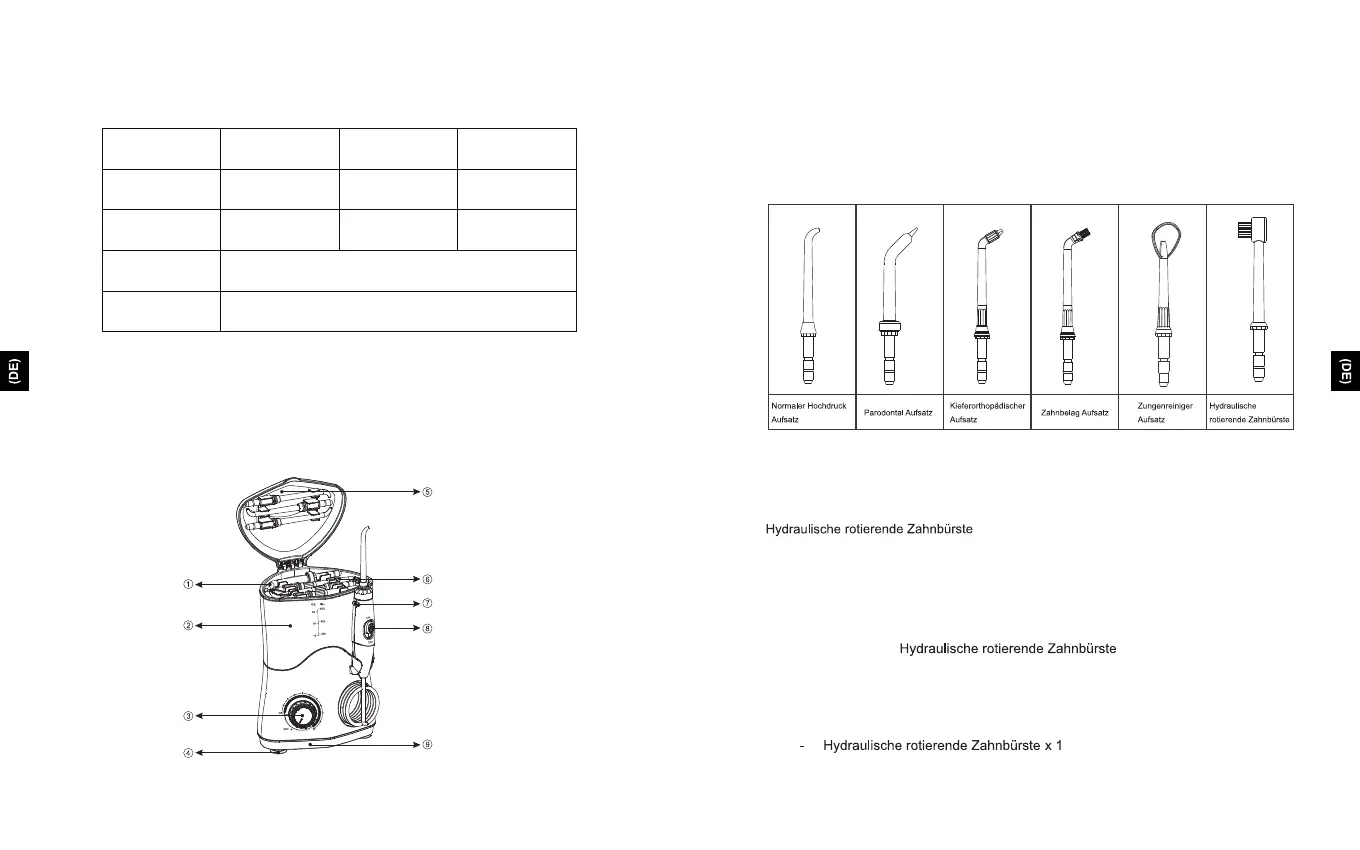 Es gibt vier andere Aufsätze für spezielle Anwendungen (Zungenreini-