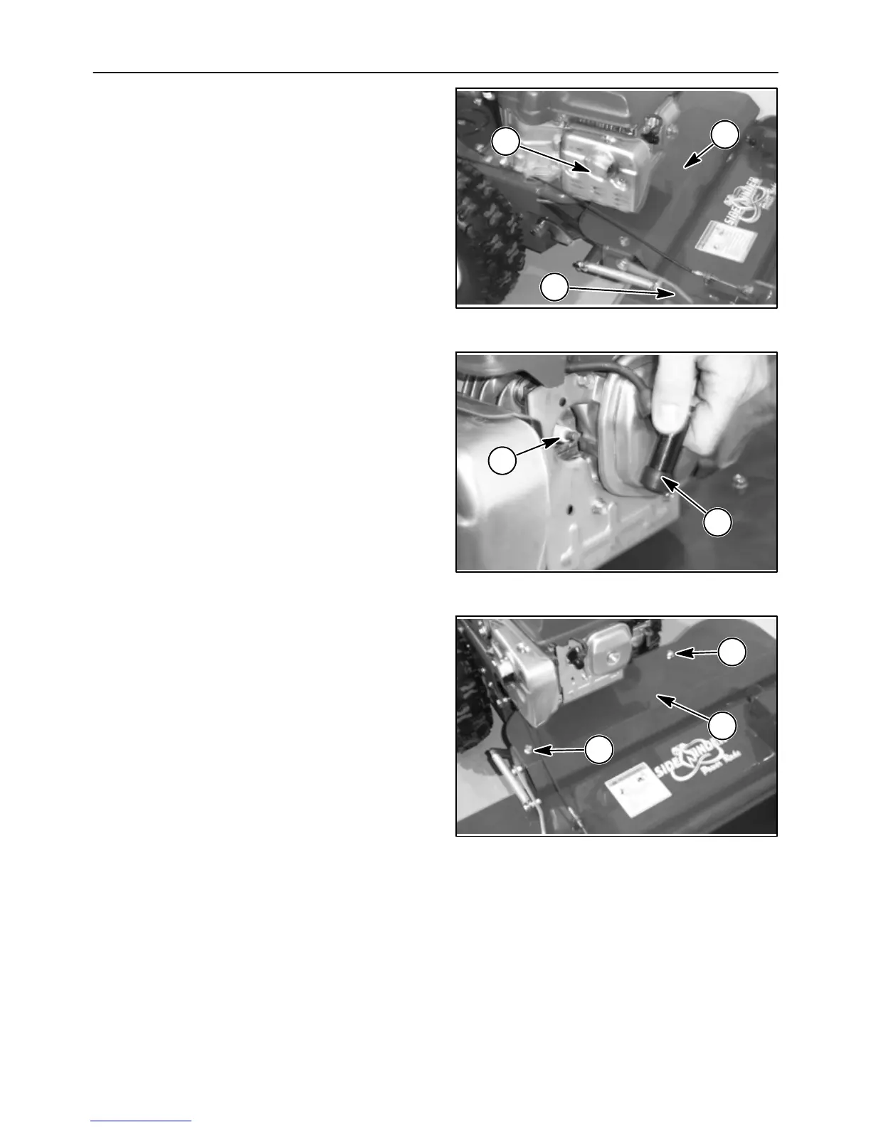 1. Allow the engine and muffler, A, to cool before