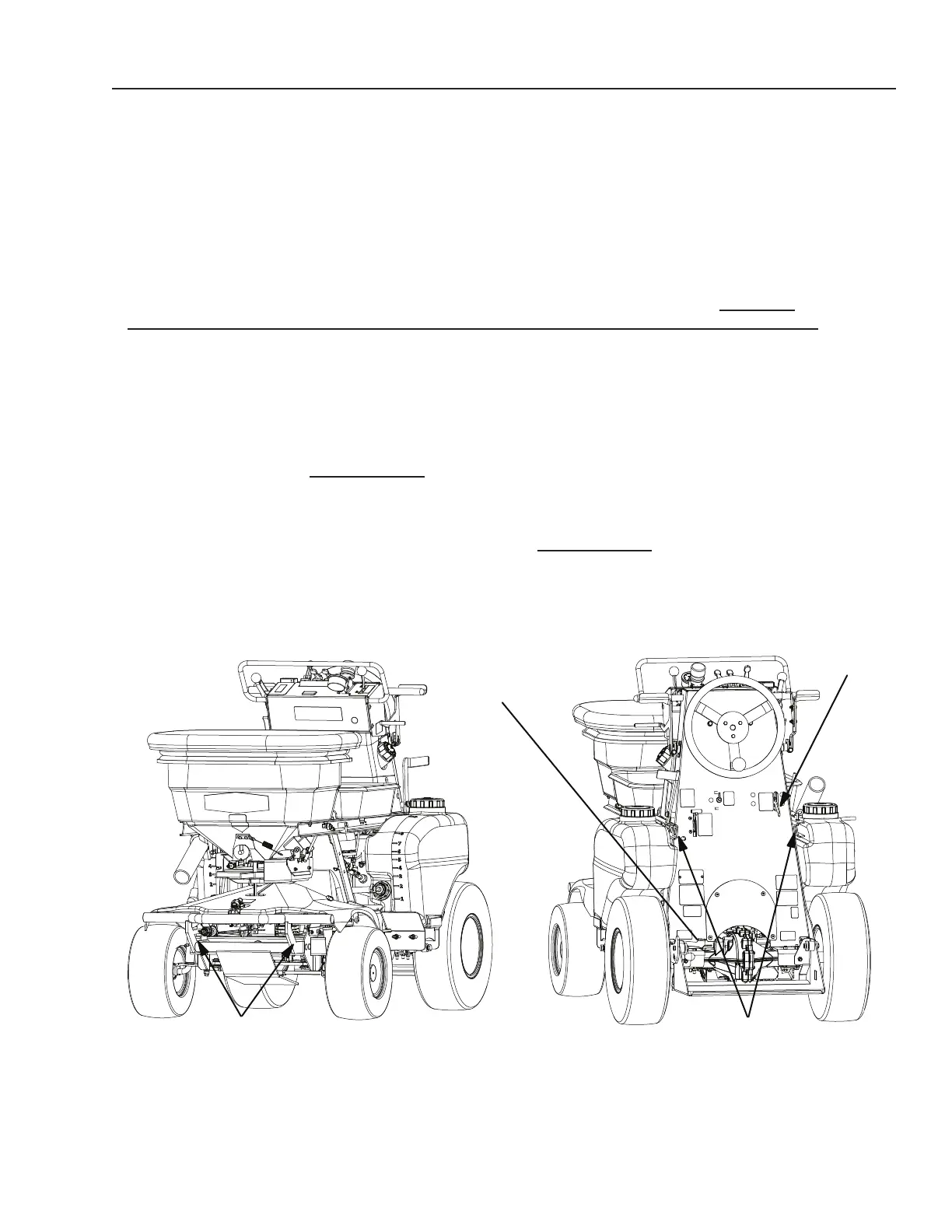 Always use the frame when you tie the machine for transport. Do not attach ties to the fertilizer hopper, tanks