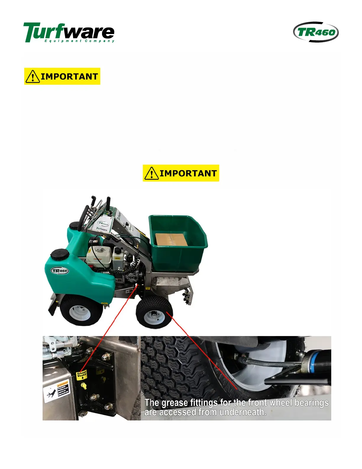 There are only 3 Grease Fittings that require WEEKLY GREASE on the T R460.