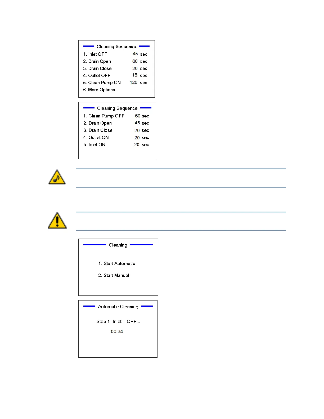 NOTE: The Clean Pump ON time must be at least 90 seconds to allow the bubble trap to ll and