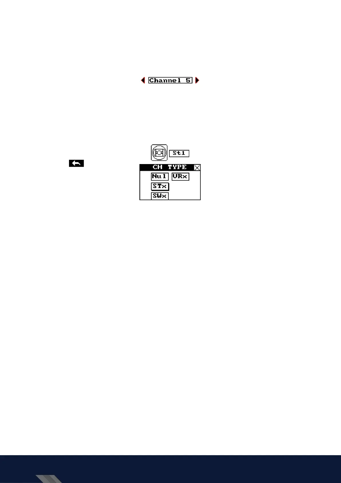 The left box below the channel name allows the user to pick the type of control for that channel, Nul, VRx, Stx and