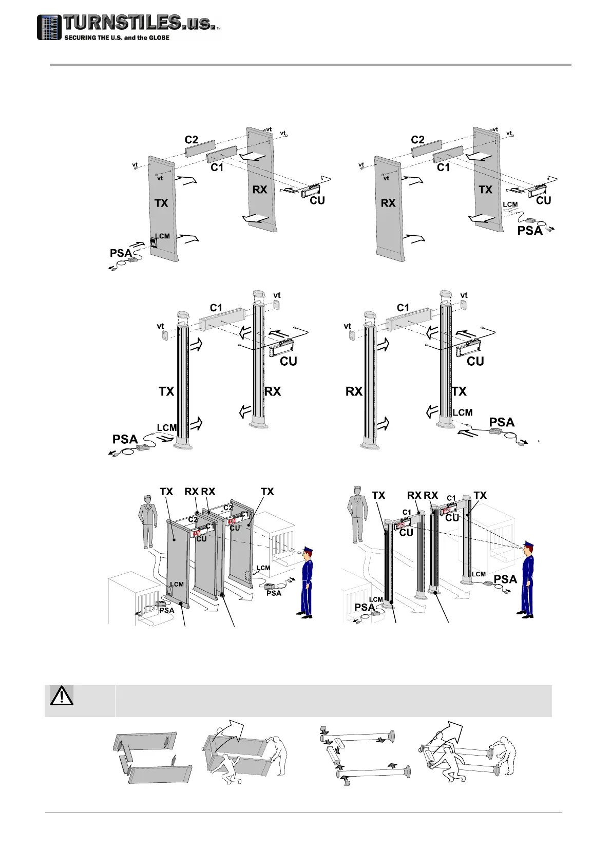 It is recommended that the archway is assembled on the floor, in horizontal position. Whenever needed,