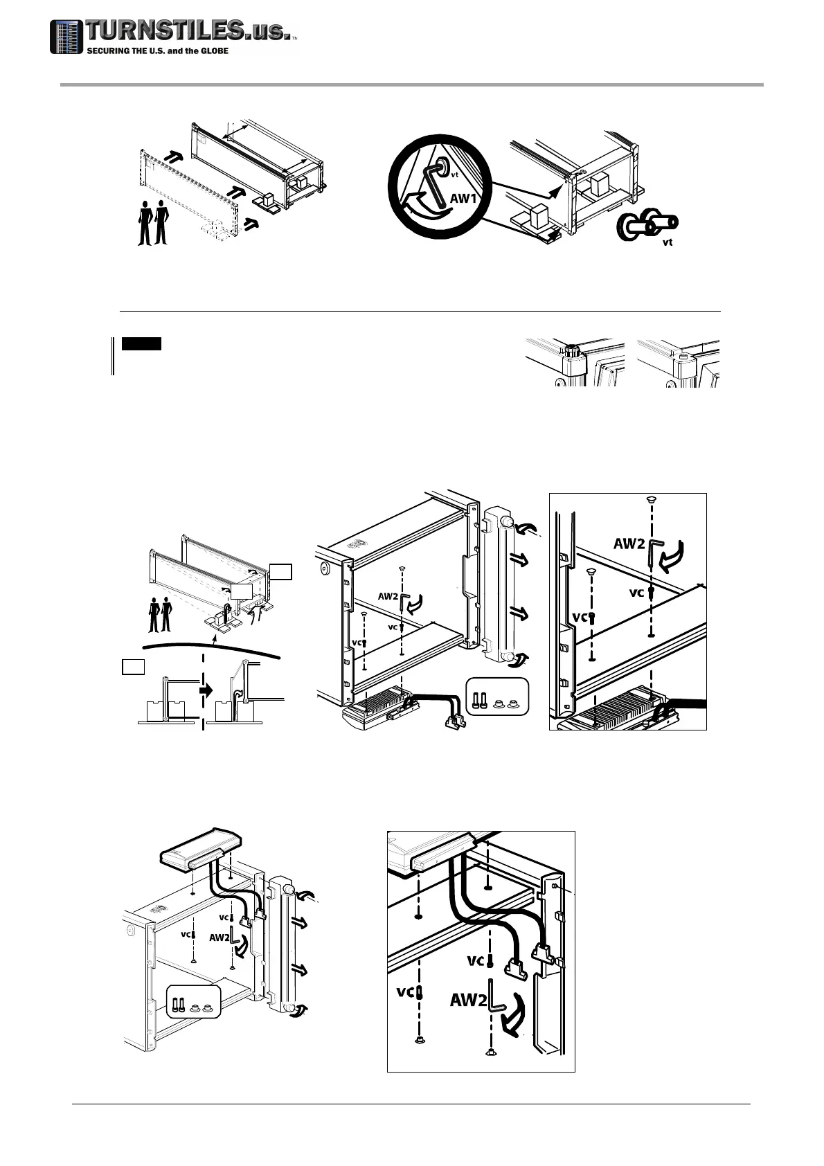 Approach the other panel and attach the crossbars, using vt screws and AW1 Allen key.