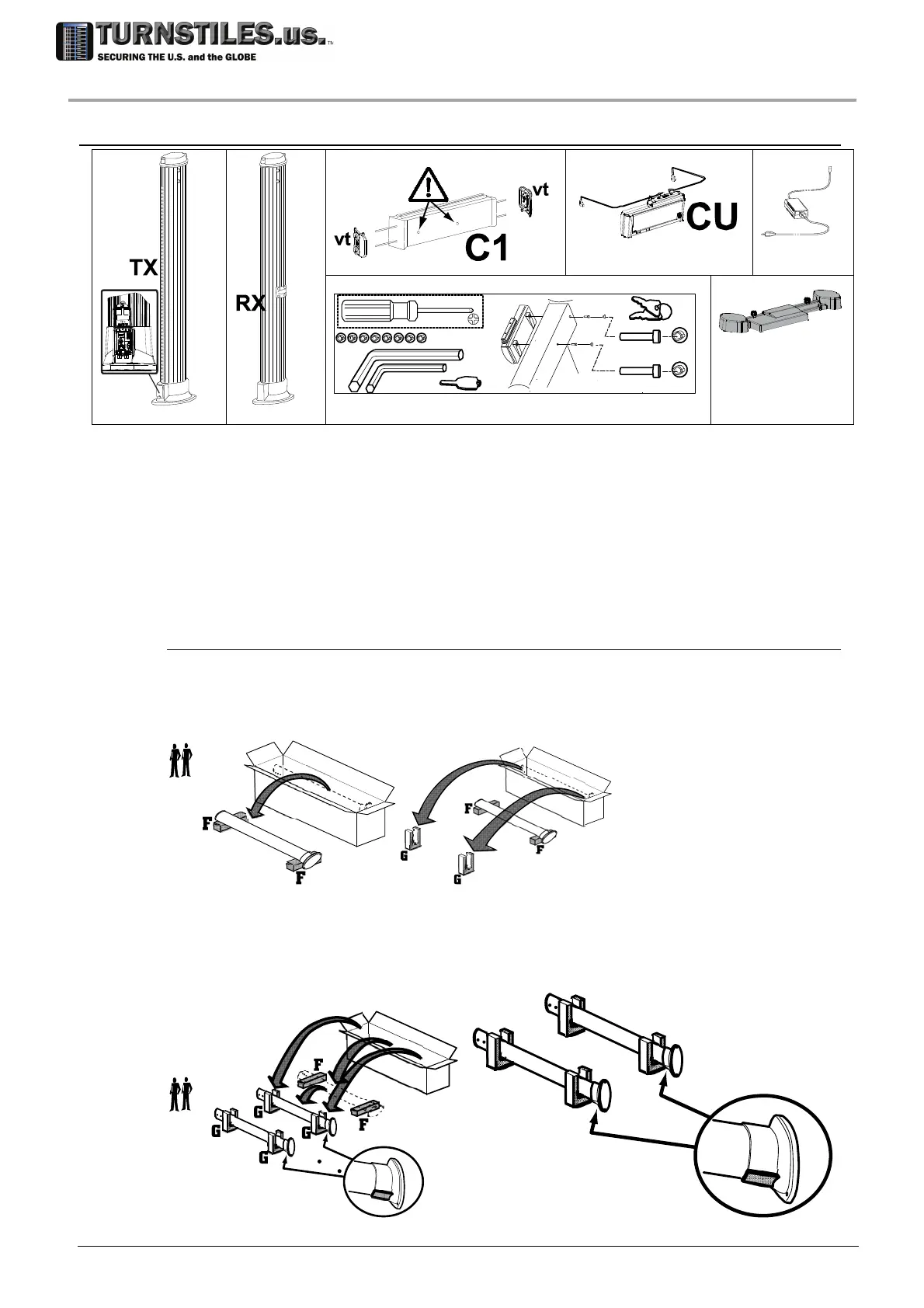 Extract G supports from the packaging and place them on the floor.